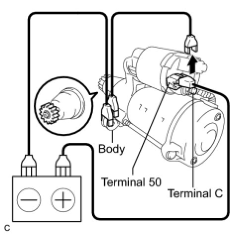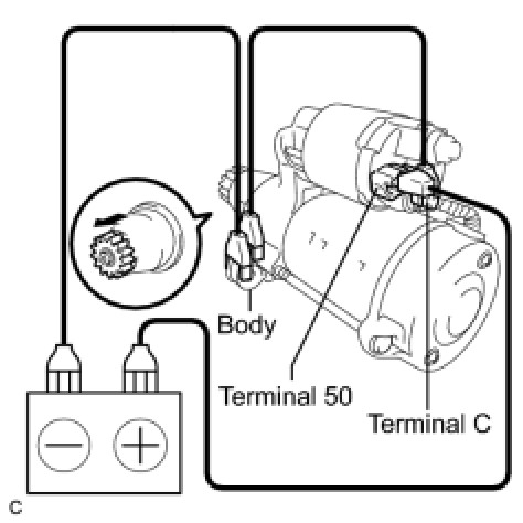 (1) Check that the pinion gear does not return inward after the cable is disconnected from terminal C.