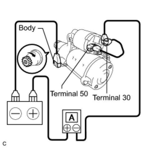 (3) Connect the battery and ammeter to the starter as shown in the illustration.