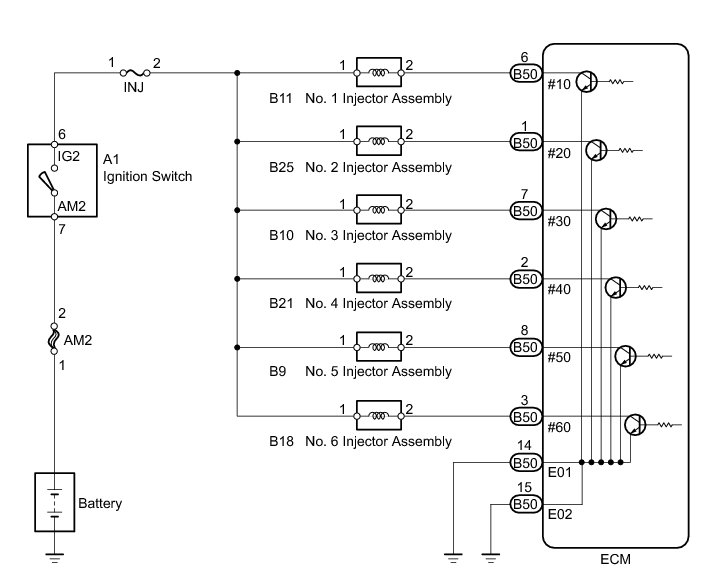 1GR-FE ENGINE CONTROL SYSTEM: SFI SYSTEM: Fuel Injector Circuit