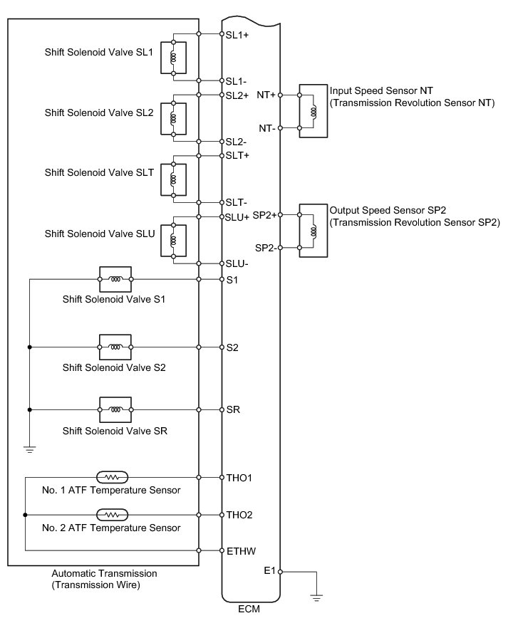 The configuration of the electronic control system in the A750E automatic transmission is as shown in the following chart.