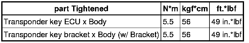 SERVICE SPECIFICATIONS: ENGINE IMMOBILISER: TORQUE SPECIFICATIONS
