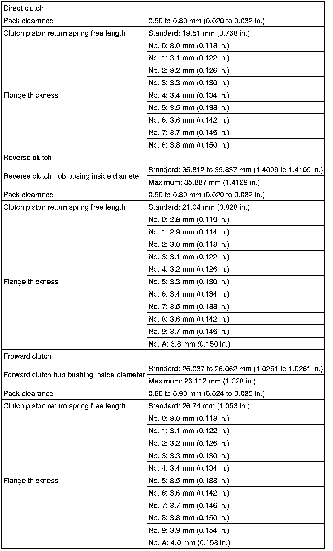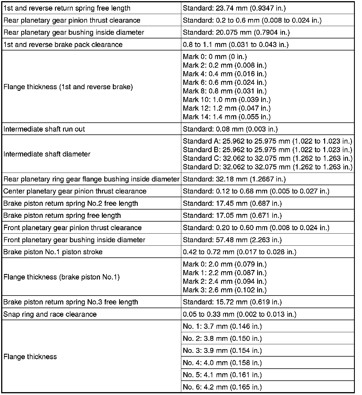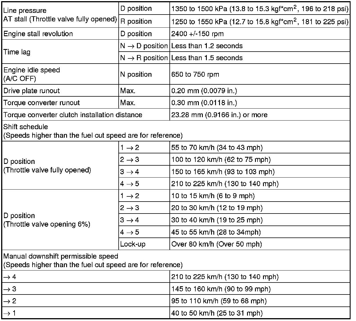 SERVICE SPECIFICATIONS: A750E AUTOMATIC TRANSMISSION: SERVICE DATA