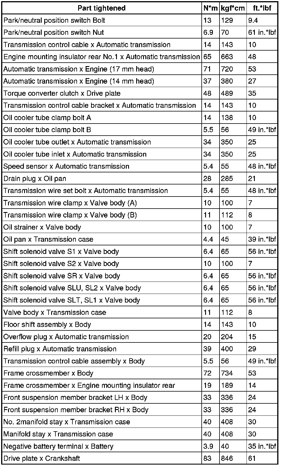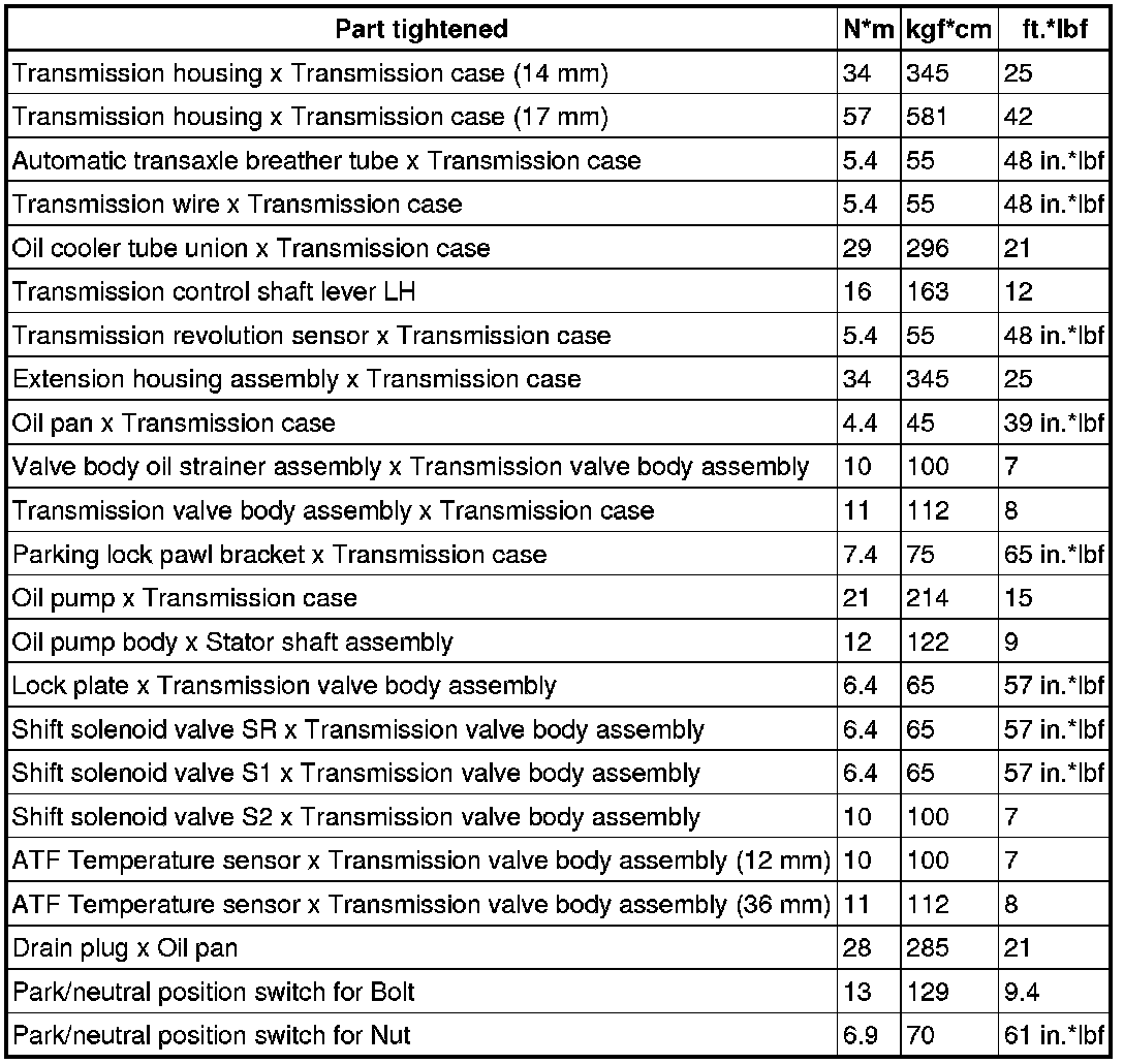 SERVICE SPECIFICATIONS: A750E AUTOMATIC TRANSMISSION: TORQUE SPECIFICATIONS