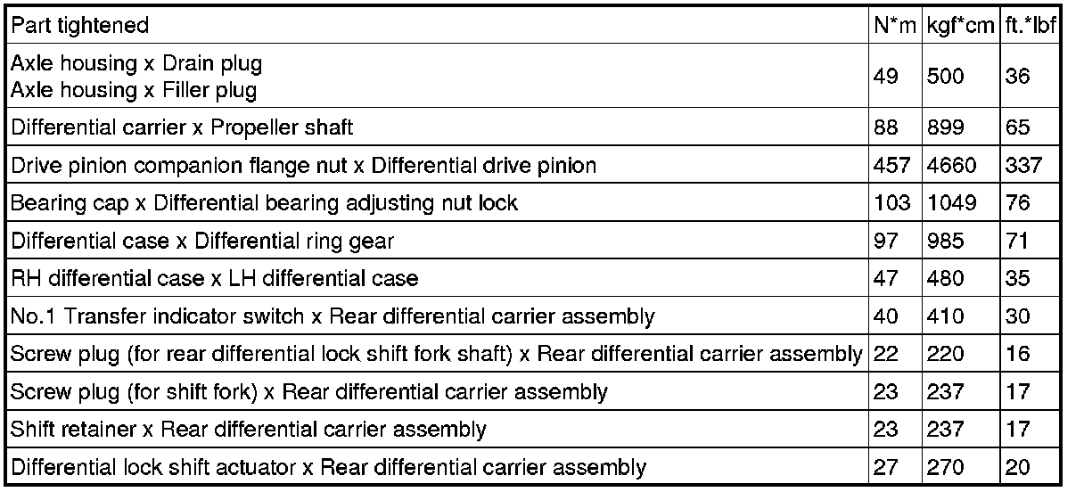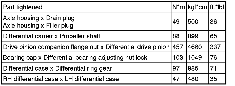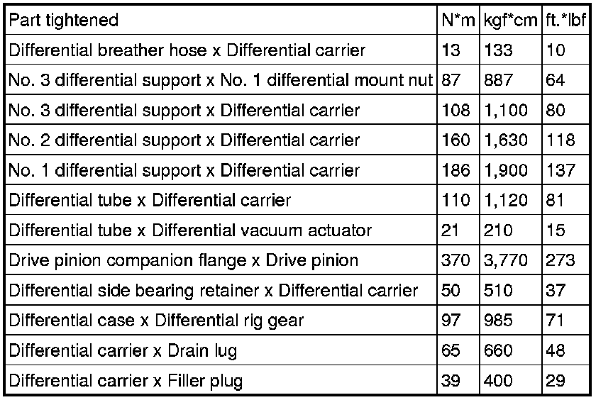 SERVICE SPECIFICATIONS: DIFFERENTIAL: TORQUE SPECIFICATIONS
