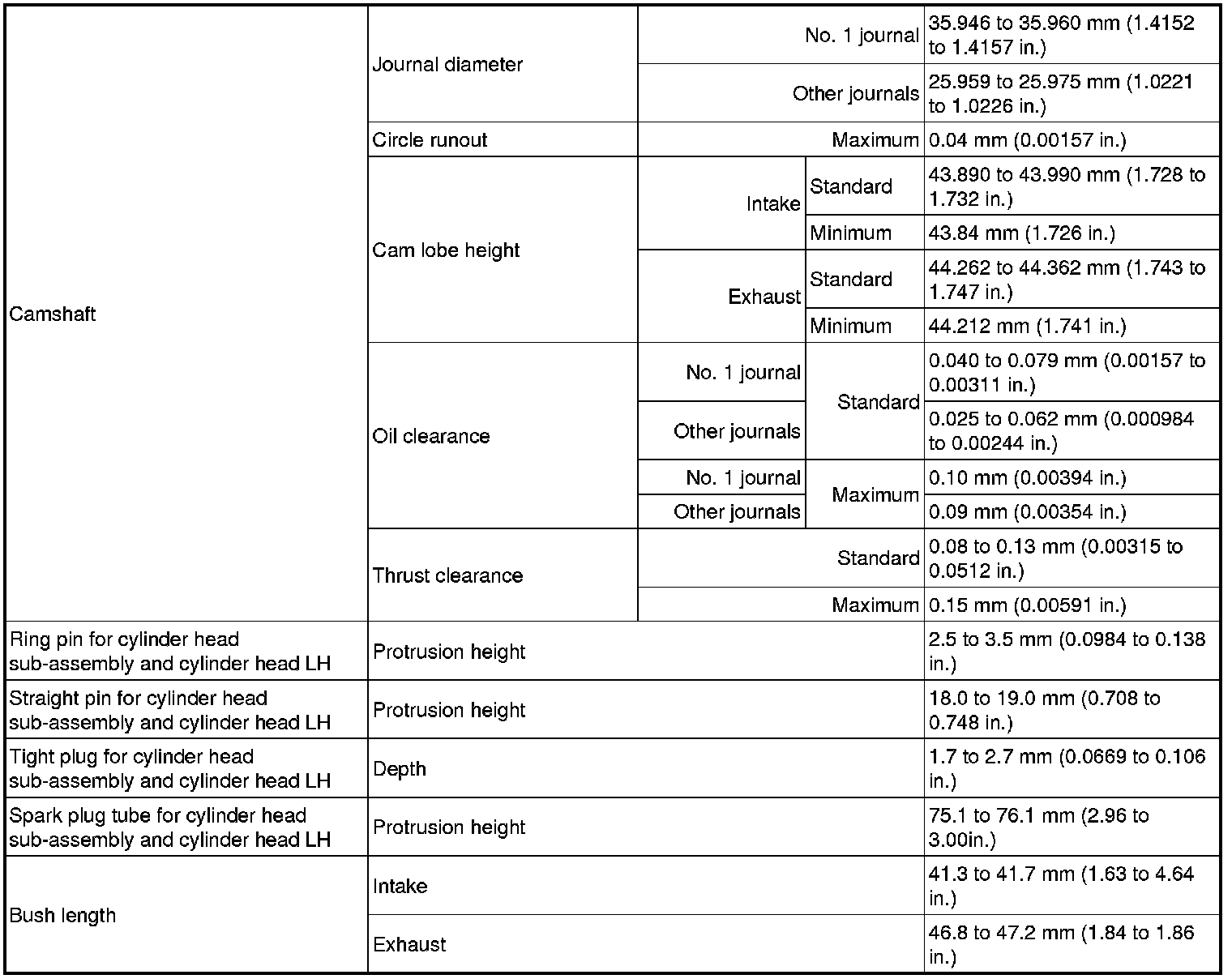 SERVICE SPECIFICATIONS: 1GR-FE ENGINE MECHANICAL: SERVICE DATA