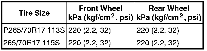 Cold Tire Inflation Pressure