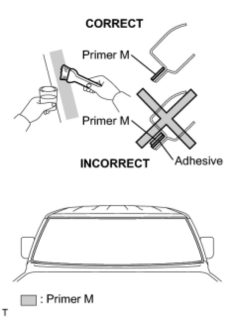 (c) Using a brush or sponge, apply Primer G to the edge of the windshield glass and the contact surface.