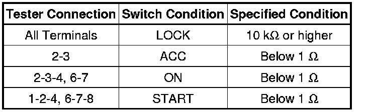 7. INSPECT IGNITION SWITCH ASSEMBLY