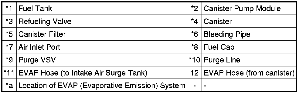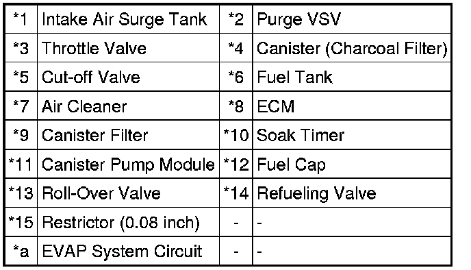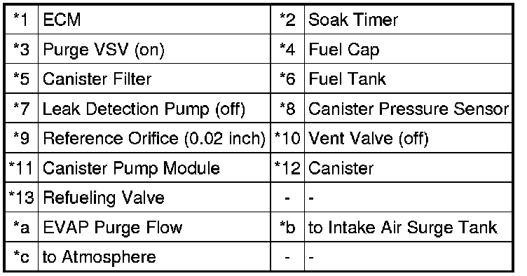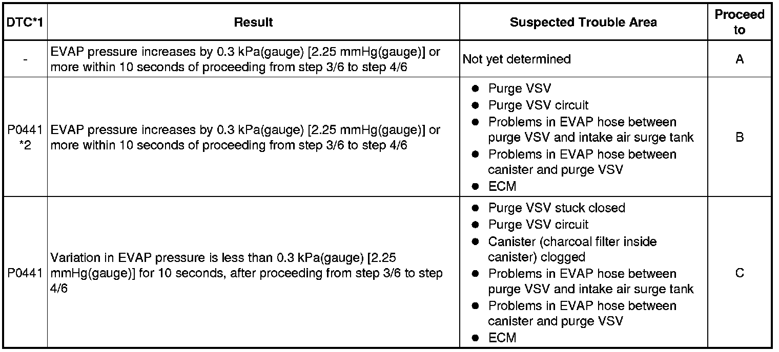 * *2: This result suggests that due to purge line blockage or purge VSV malfunction, the DTC was stored by the purge flow monitor while the engine was running, or that key-off monitor test results were nearly borderline values.
