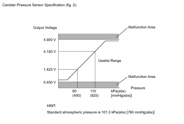 *3: Canister pressure sensor standard output range is 70 to 110 kPa(abs) [525 to 825 mmHg(abs)]. This varies by weather.