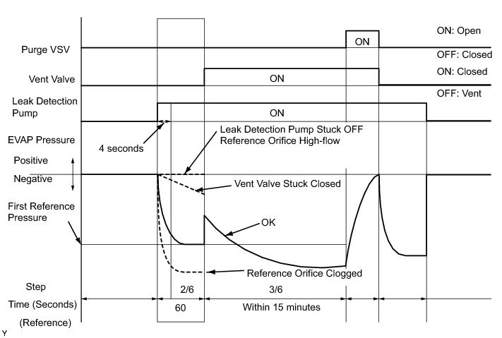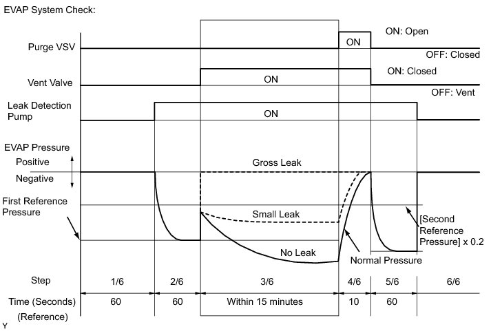 (b) Compare the EVAP pressure in step 3/6 and the second reference pressure (step 5/6).