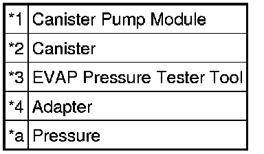 (b) Connect the EVAP pressure tester tool to the canister pump module with the adapter.