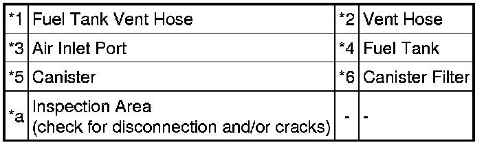 * When replacing the canister, check the canister pump module interior and related pipes for water, fuel and other liquids. If liquids are present, check for disconnections and/or cracks in the following: 1) the pipe from the air inlet port to the canister pump module; 2) the canister filter; and 3) the fuel tank vent hose.
