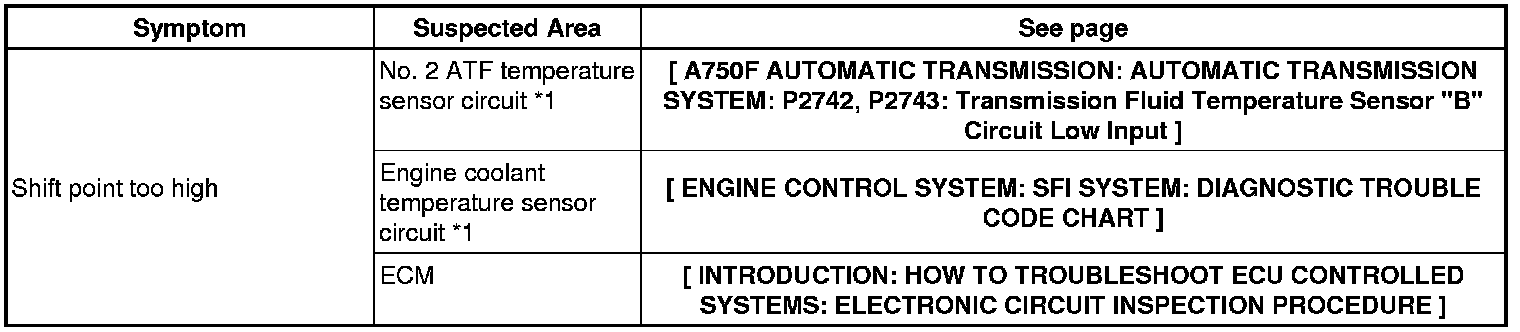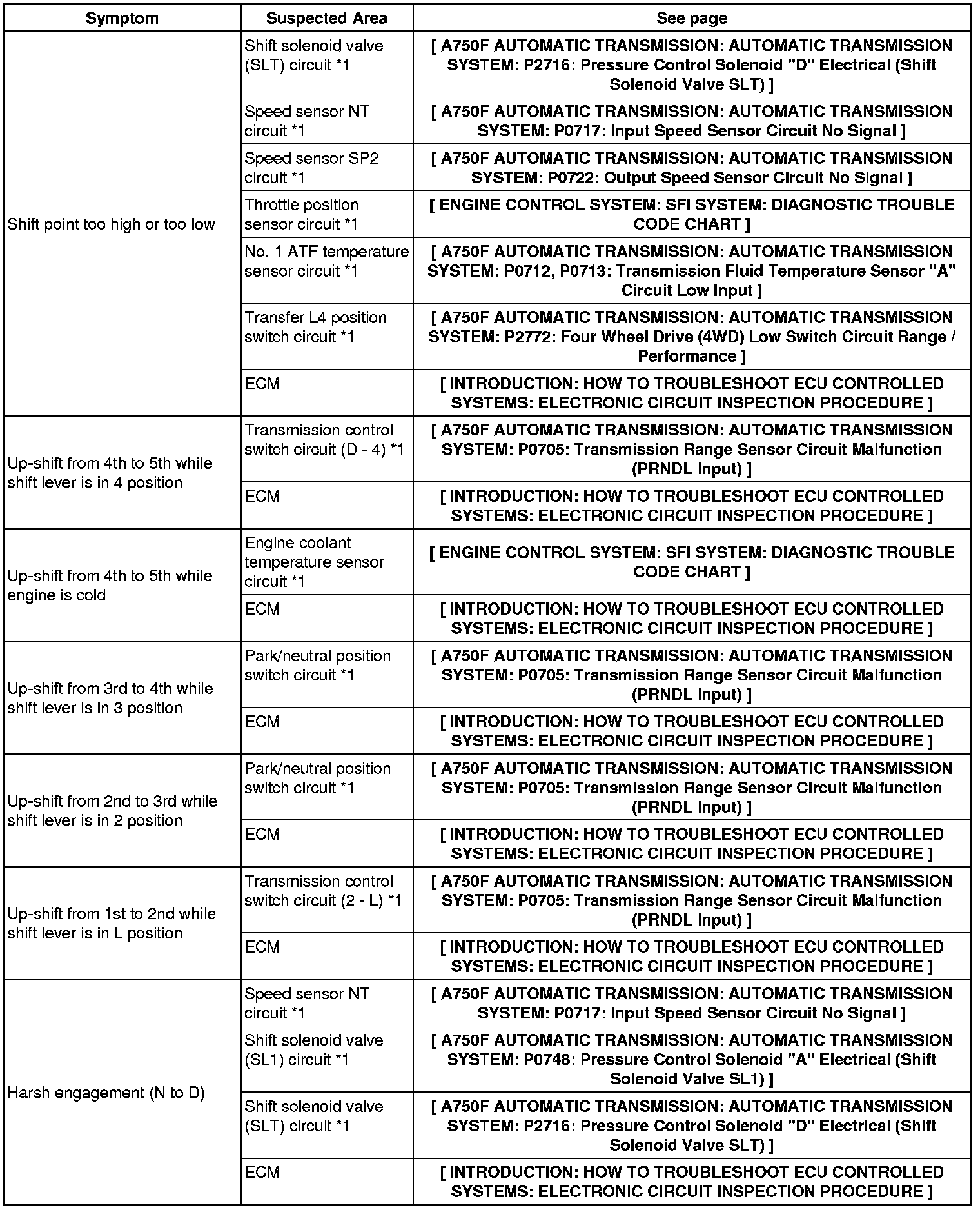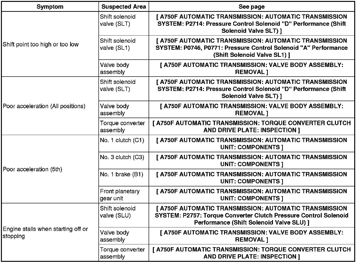 A750F AUTOMATIC TRANSMISSION: AUTOMATIC TRANSMISSION SYSTEM: PROBLEM SYMPTOMS TABLE