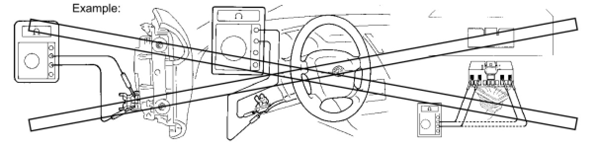 (2) Never measure the resistance of the airbag squib. This may cause the airbag to inflate, which could cause serious injury.