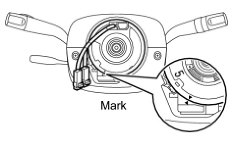 (1) The steering wheel must be fitted correctly to the steering column with the spiral cable at the neutral position, as cable disconnection and other problems may occur. Refer to the information about correct installation of the steering wheel.