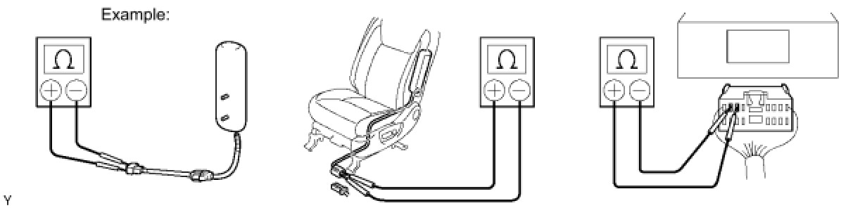 (1) Never measure the resistance of the seat outer belt. This may cause the pretensioner of the seat belt to activate, which could cause serious injury.