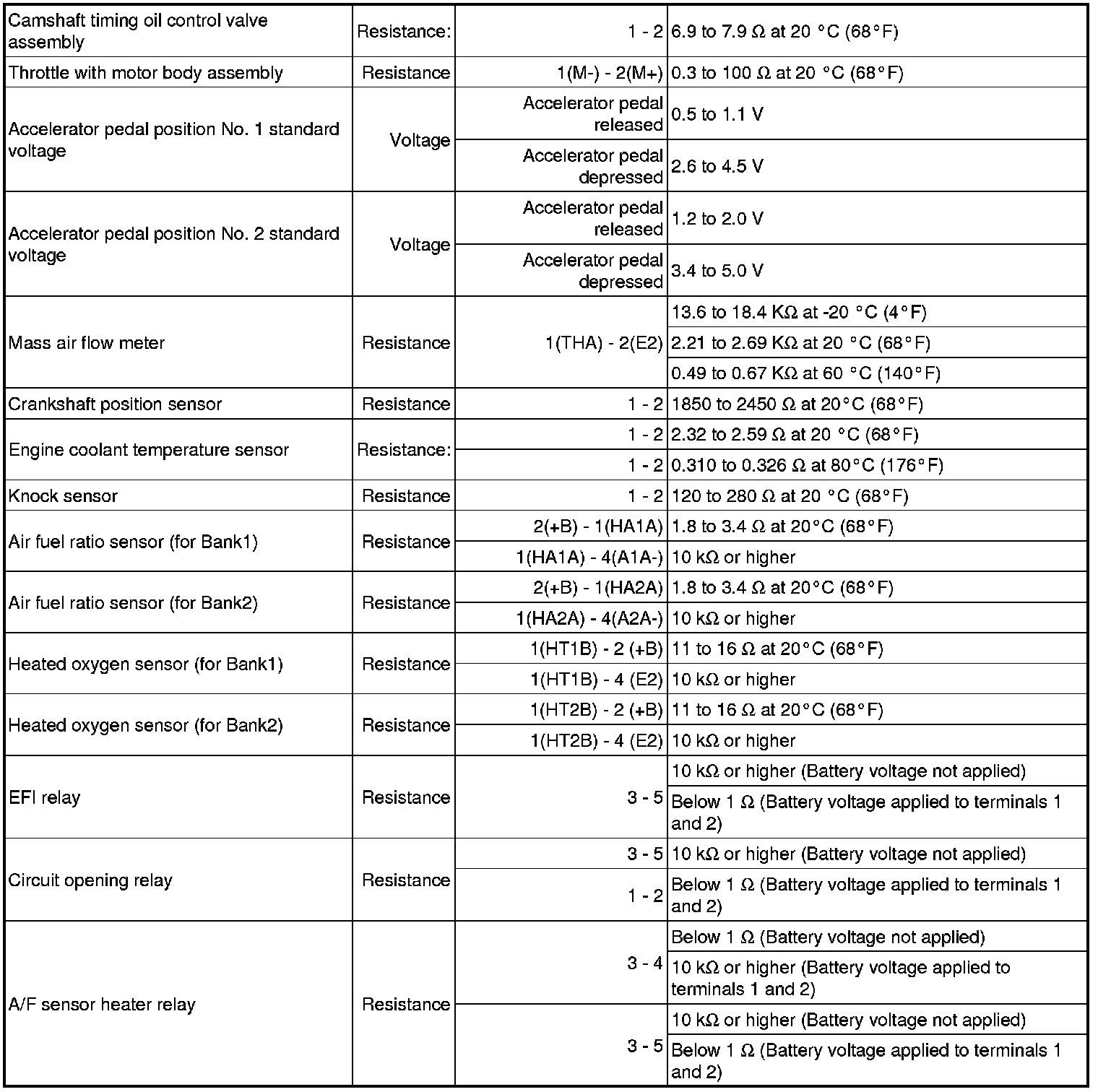 SERVICE SPECIFICATIONS: 1GR-FE ENGINE CONTROL SYSTEM: SERVICE DATA