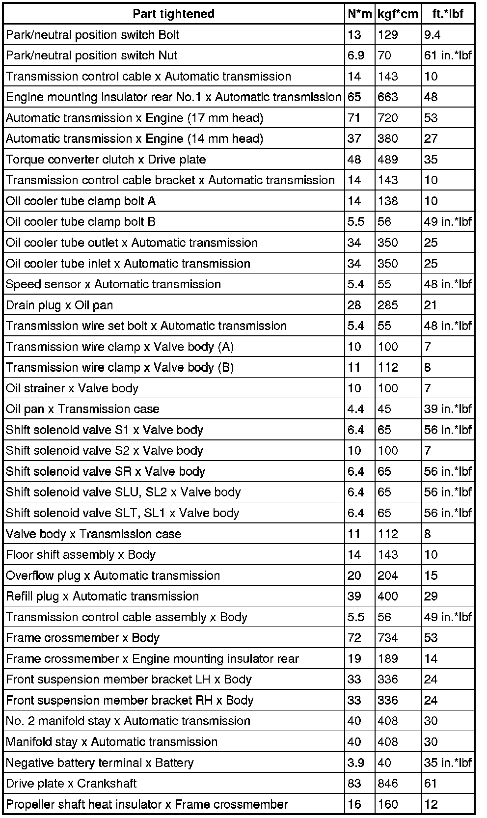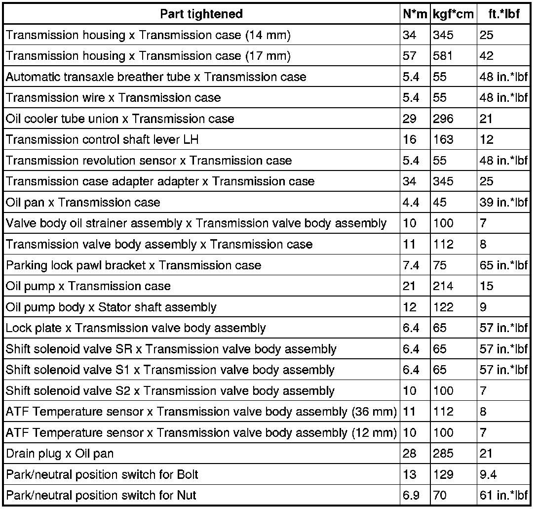 SERVICE SPECIFICATIONS: A750F AUTOMATIC TRANSMISSION: TORQUE SPECIFICATIONS