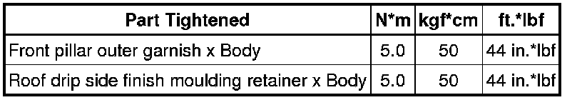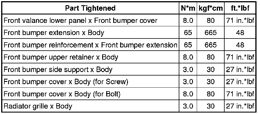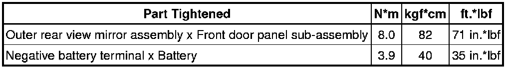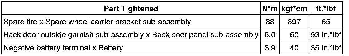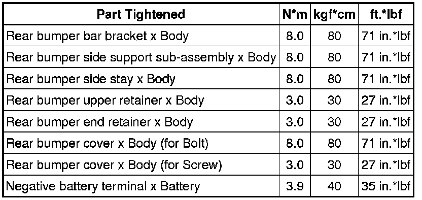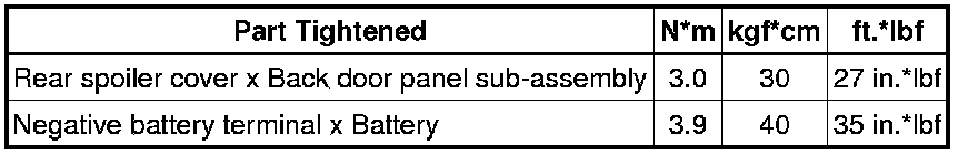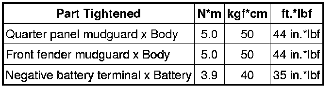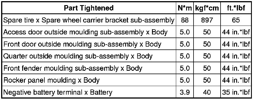 SERVICE SPECIFICATIONS: EXTERIOR: TORQUE SPECIFICATIONS