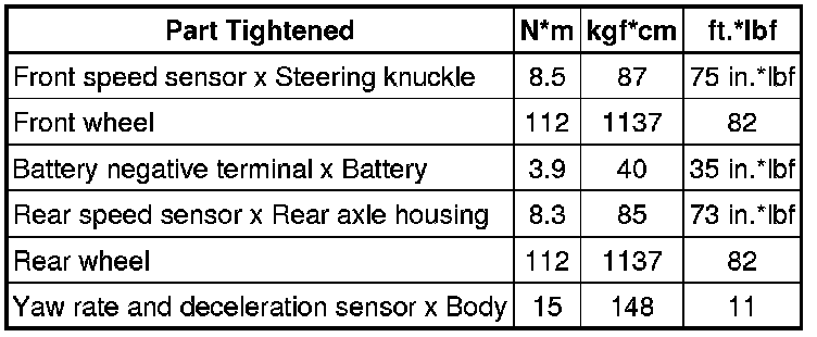 SERVICE SPECIFICATIONS: BRAKE CONTROL: TORQUE SPECIFICATIONS