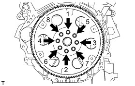 Uniformly install and tighten the 8 bolts in several steps in the sequence shown in the illustration.
