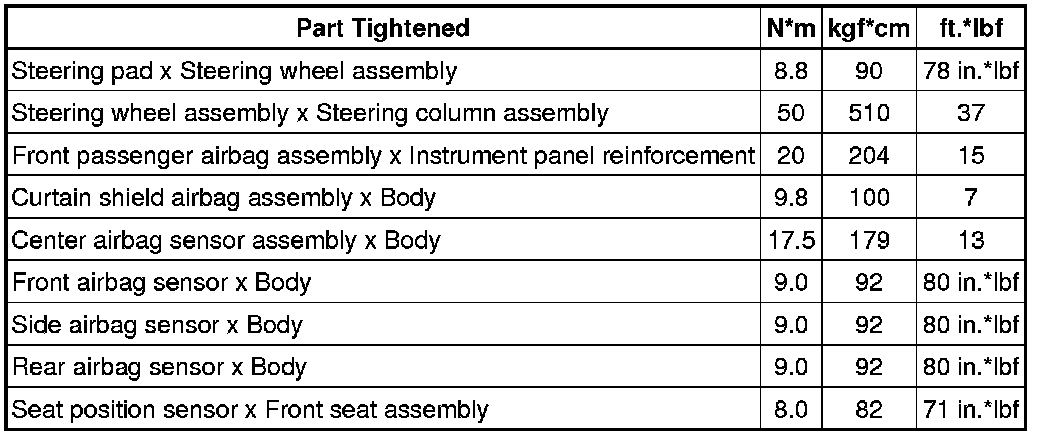 SERVICE SPECIFICATIONS: SUPPLEMENTAL RESTRAINT SYSTEM: TORQUE SPECIFICATIONS