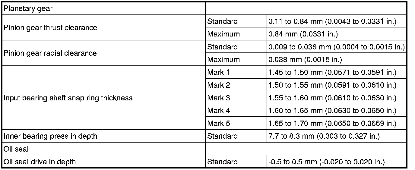 SERVICE SPECIFICATIONS: VF2A TRANSFER: SERVICE DATA