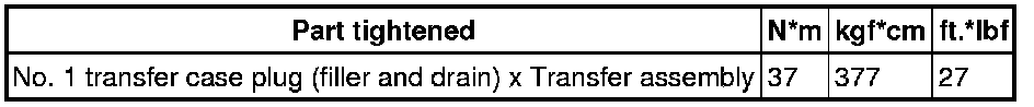 SERVICE SPECIFICATIONS: VF2A TRANSFER: TORQUE SPECIFICATIONS