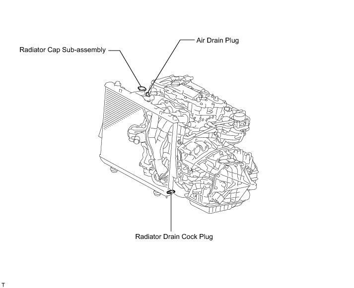(b) Remove the radiator cap sub-assembly from the radiator assembly.