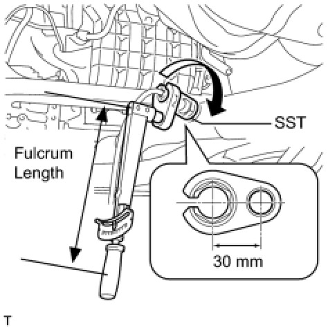 * The "with SST" torque value is effective when using a torque wrench with a fulcrum length of 300 mm (11.81 in.) Service Precautions.
