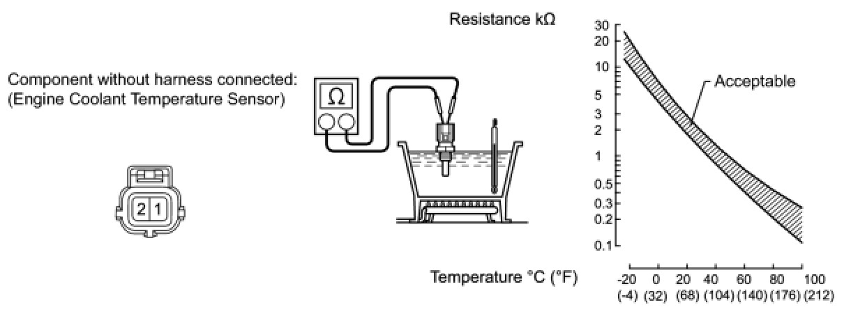 If the result is not as specified, replace the engine coolant temperature sensor.