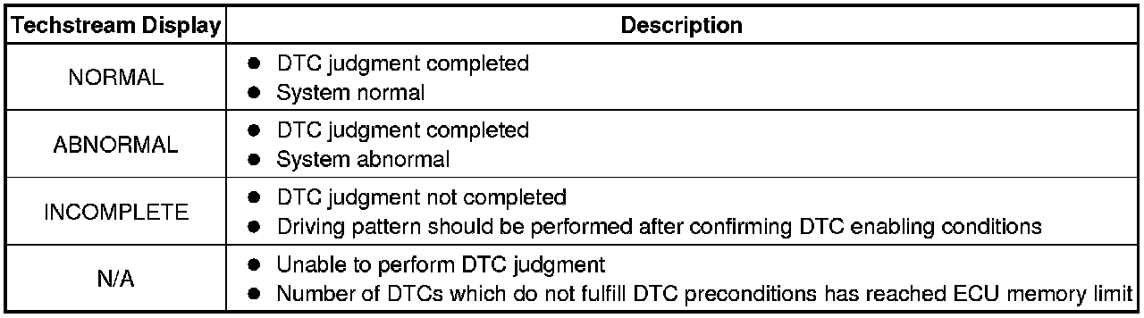 * With "All Readiness", you can check whether or not the DTC judgment has been completed by using the Techstream.