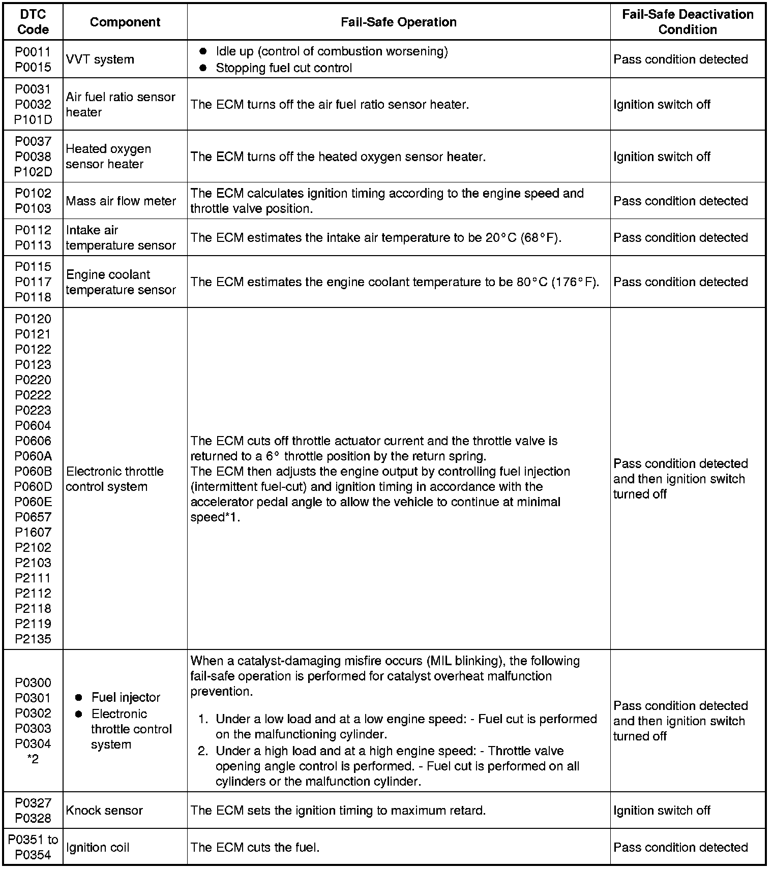 * *2: Misfire-related fail-safe operations occur when catalyst overheat malfunctions occur.