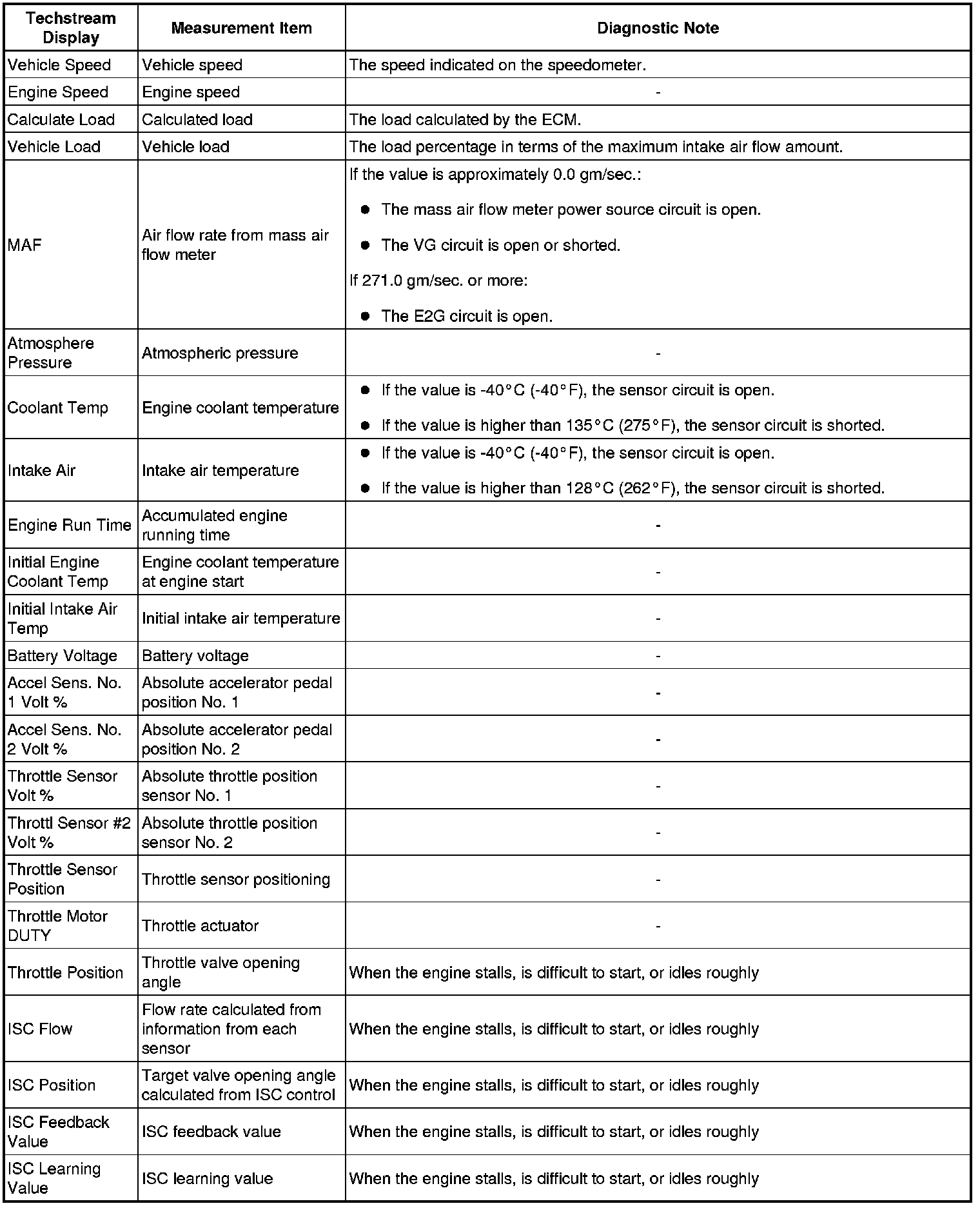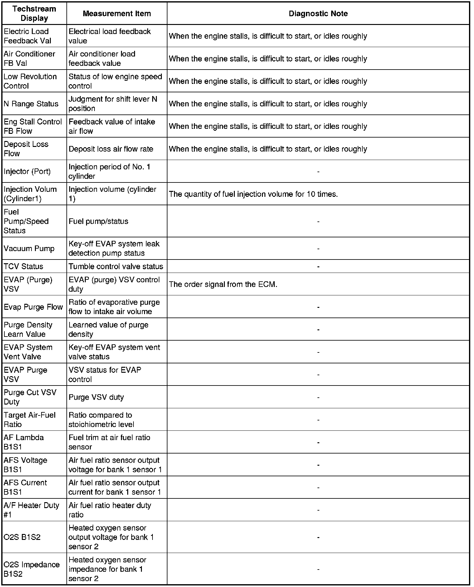 * The ECM records vehicle and driving condition information as freeze frame data the moment a DTC is stored. When troubleshooting, freeze frame data can be helpful in determining whether the vehicle was moving or stationary, whether the engine was warmed up or not, whether the air fuel ratio was lean or rich, as well as other data recorded at the time of a malfunction.