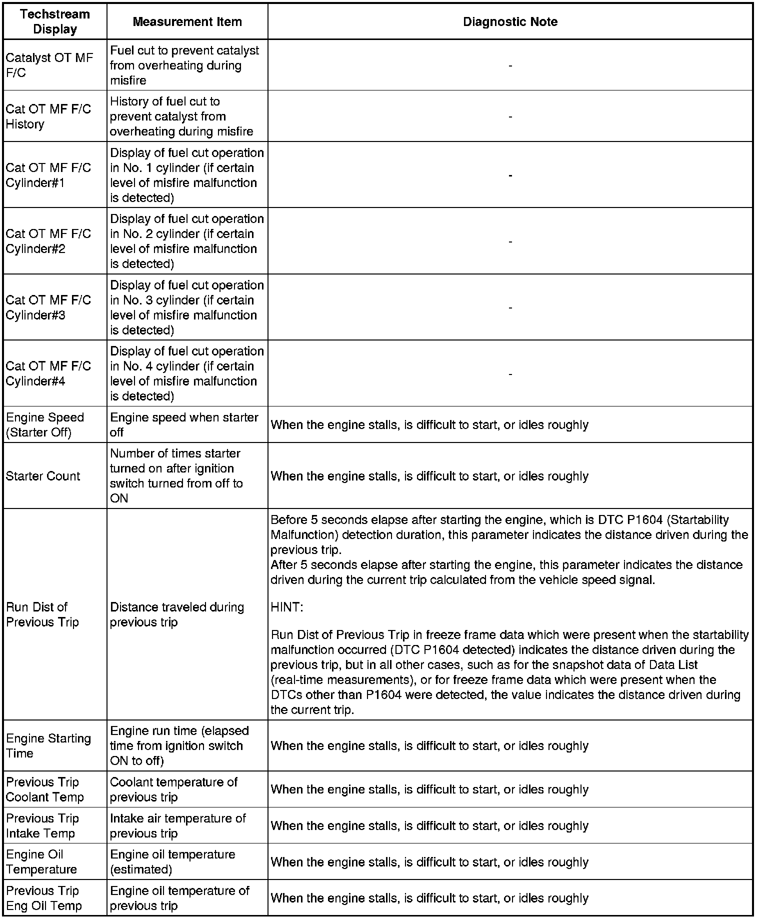 1AR-FE ENGINE CONTROL SYSTEM: SFI SYSTEM: FREEZE FRAME DATA