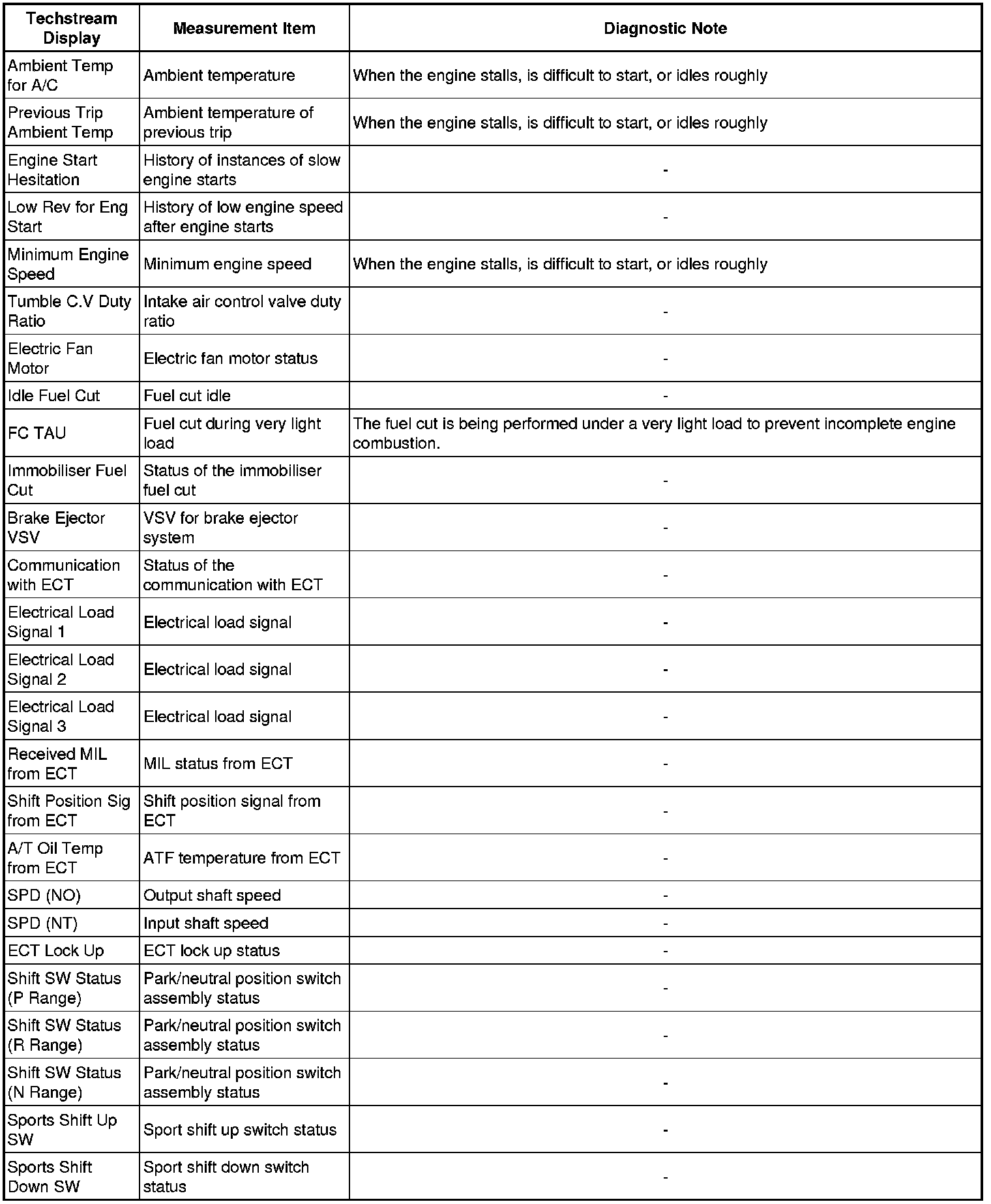 * These data sets can be used to simulate the condition of the vehicle around the time of the occurrence of the malfunction. The data may assist in identifying the cause of the malfunction, and in judging whether it was temporary or not.