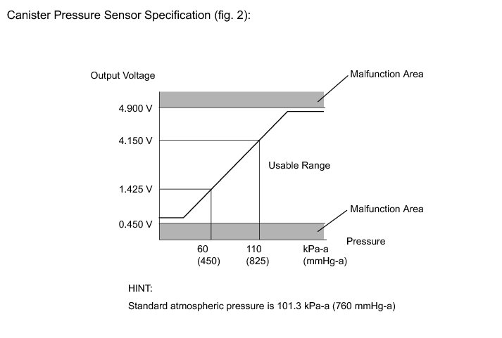 *3: Canister pressure sensor standard output range is 70 to 110 kPa(abs) [525 to 825 mmHg(abs)]. This varies by weather.