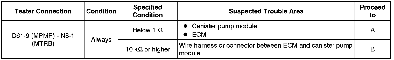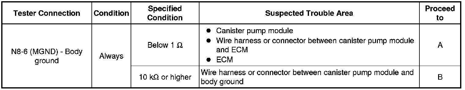 B -- CHECK HARNESS AND CONNECTOR (ECM - CANISTER PUMP MODULE)
