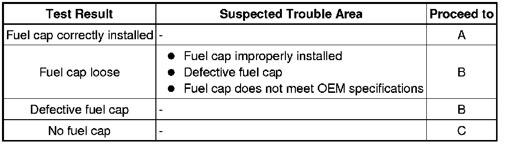 B -- CORRECTLY REINSTALL OR REPLACE FUEL TANK CAP ASSEMBLY