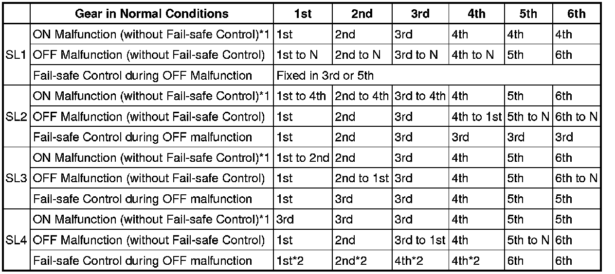*1: Fail-safe control is not actuated when an ON malfunction occurs.