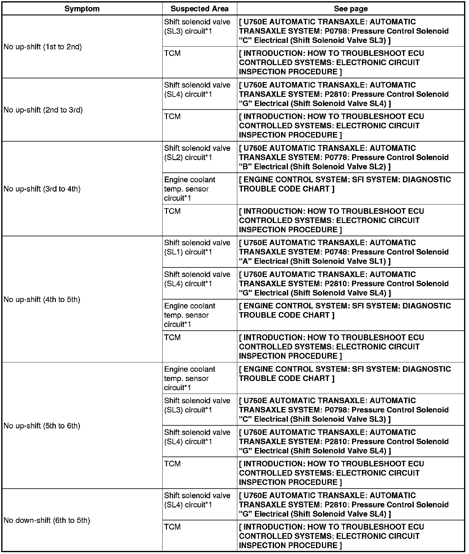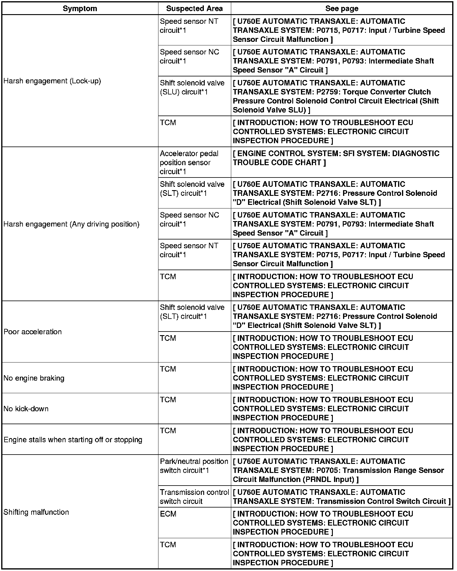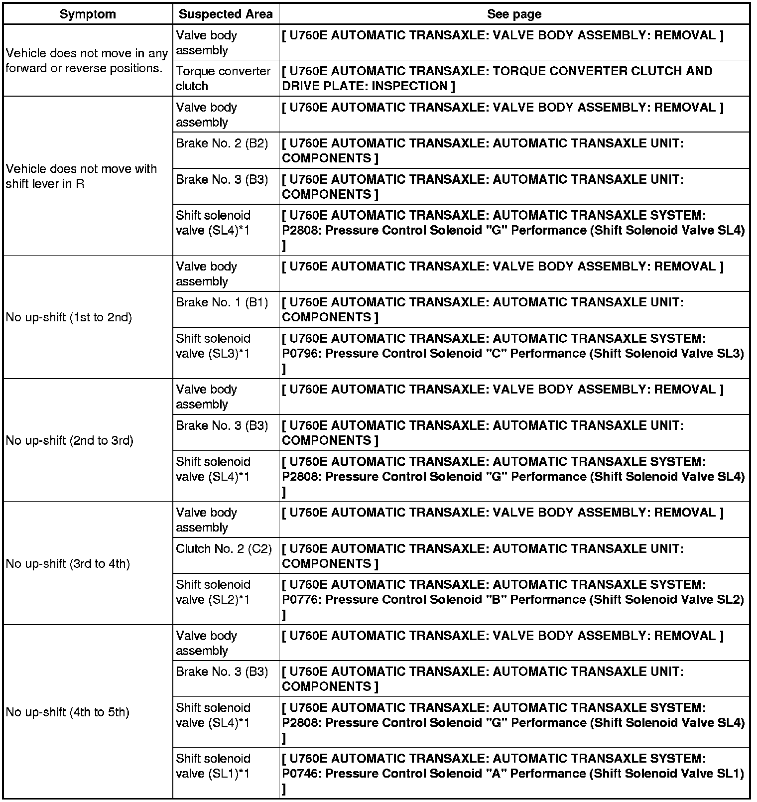 U760E AUTOMATIC TRANSAXLE: AUTOMATIC TRANSAXLE SYSTEM: PROBLEM SYMPTOMS TABLE