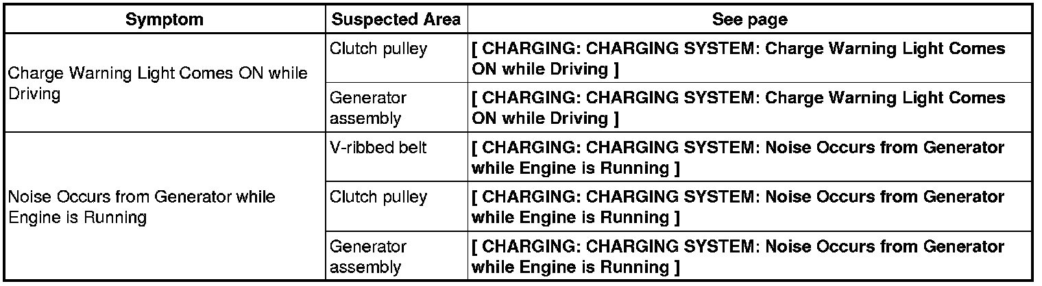 1AR-FE CHARGING: CHARGING SYSTEM: PROBLEM SYMPTOMS TABLE