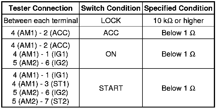 1AR-FE STARTING: IGNITION SWITCH: INSPECTION