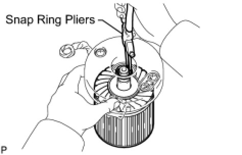 (d) Using snap ring pliers, securely install a new snap ring to the armature shaft groove.