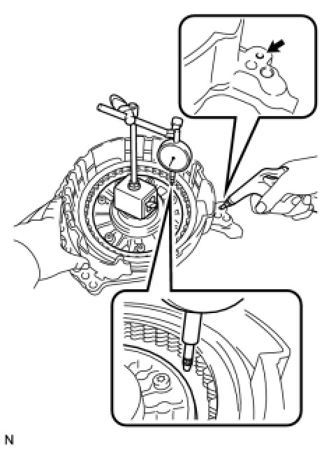 (a) Using a dial indicator, measure the inside diameter of the bushings of the planetary sun gear.