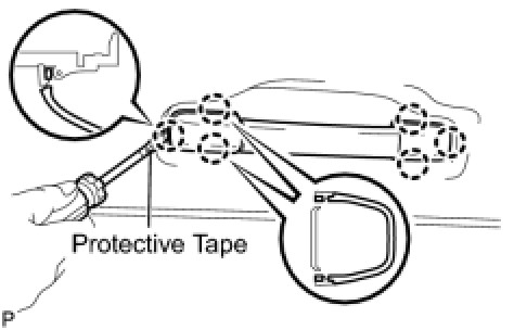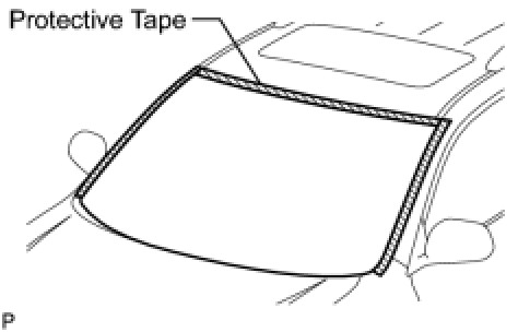 (c) Apply protective tape to the installation position of the windshield glass sub-assembly on the vehicle body.