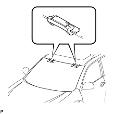 (g) Place matchmarks on the windshield glass sub-assembly and vehicle body on the locations indicated in the illustration.