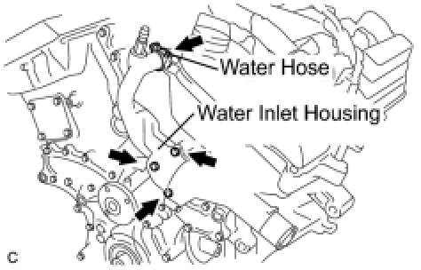 (b) Install the water inlet housing with the 2 bolts and nut.