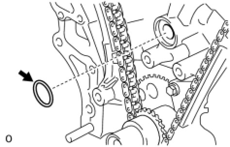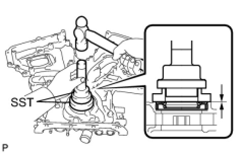 (a) Using SST, tap in a new oil seal until its surface is flush with the timing chain case edge.